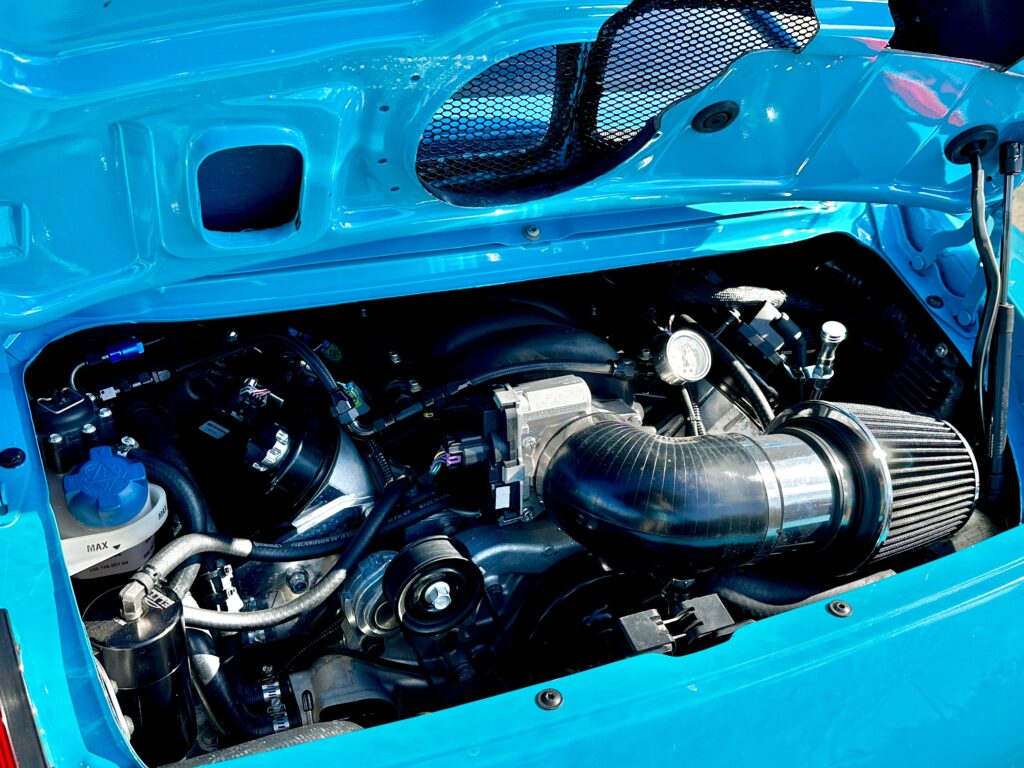 I met Sam the owner of the blue 911 first and quickly realized his car was not stock. It was indeed swapped with a Chevy LSX V8 motor. For those who do not know what a Chevy LSX V8 motor is, just think of it as having a Porsche that you stuffed a Chevy Corvette motor in. Sam told me about a small coolant leak he had been chasing down and was hoping he got it taken care of and would be good for the drive. Sam also had his kids with him and I was excited because I had planned for that.