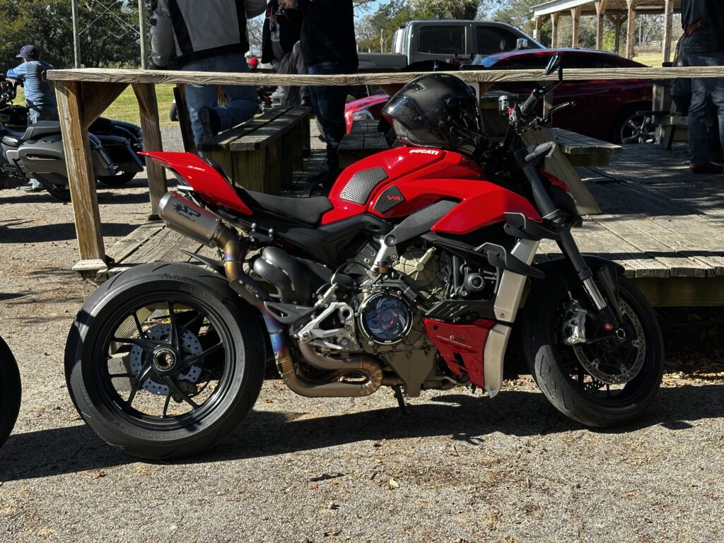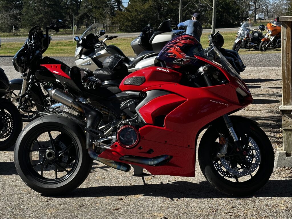 Another highlight of visiting Yankee Tavern was getting to see the motorcycles fire up and head out. I got a couple of great clips of them taking off. I really enjoyed seeing the sports bikes leave and especially two Ducati’s take off, one a V2 and another a V4. It was spectacular. Again, not just the bikes, but the riders and all their gear and seeing their shared camaraderie.