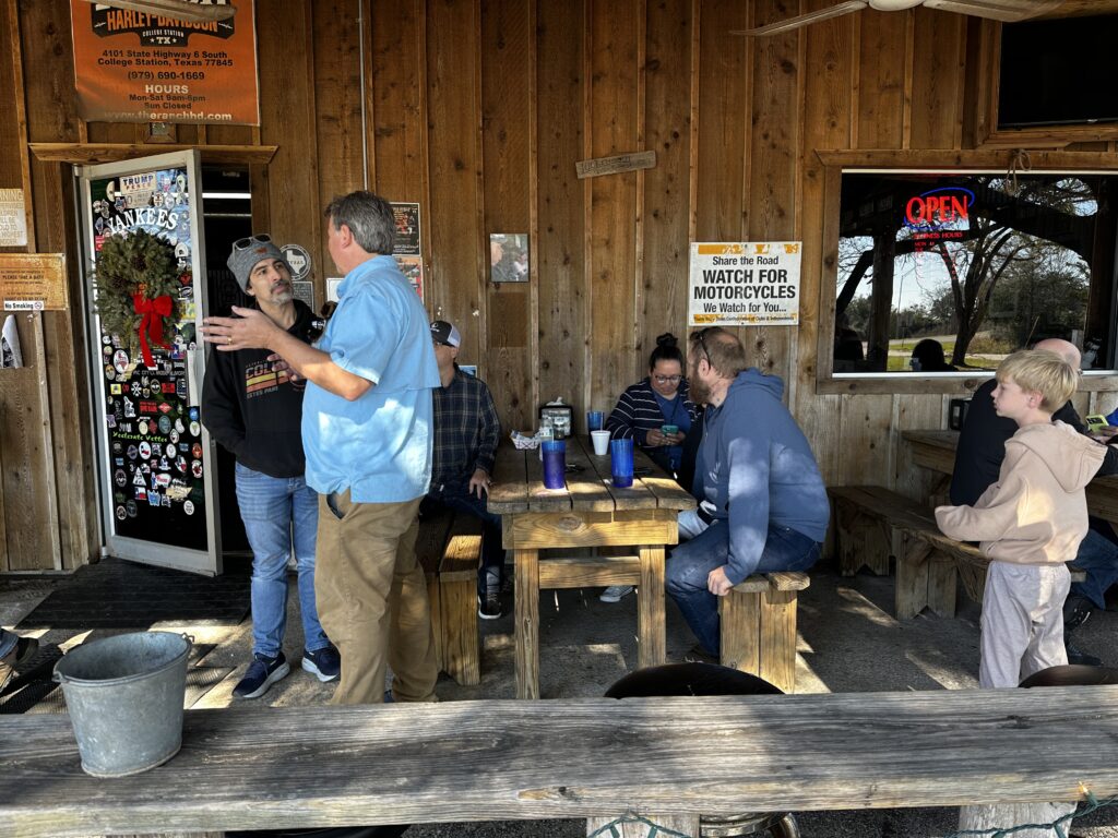 The bikes were amazing, surprisingly to my naive experiences at biker bars there was a vast array of types of bikes. A group of about 30 sport bikes, 30 hogs, and about 10 touring bikes were all parked outside. The crowd was all over the place in an awesome Texas way. As an anthropologist I was a pig in mud watching everyone interact with all their cool attire and lingo.